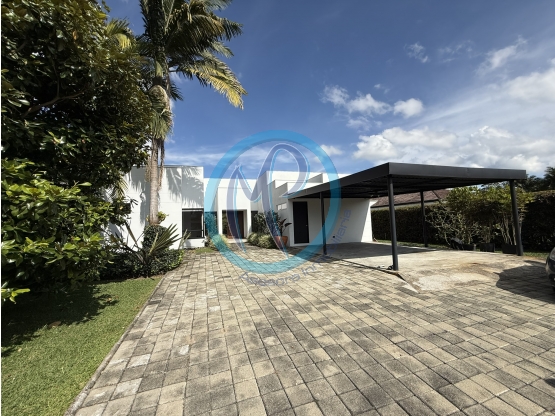 Casa campestre de un solo nivel , en un excelente sector de Llanogrande , con hermoso jardín, muy amplio para un disfrute total, cuenta con una grande y buena terraza , su zona de BBQ ,sala, comedor, con ventanal en ambos lados, cocina abierta muy amplia , horno, lavaplatos, triturador,baño social ,closet linos , 4 habitaciones( una se puede adecuar como estudio) , la principal con baño y vestier, otra habitación con baño y closet , otras dos habitaciones cada una con su vestier y tienen un baño en la mitad con puerta de entrada en cada una de las habitaciones y el baño tiene dos lavamanos , habitación de servicio con baño, buena zona de ropas.Piso en PVC Aleman.